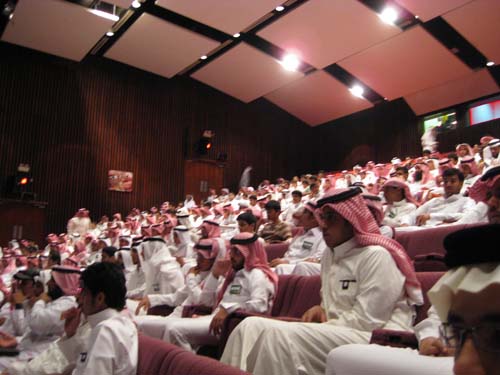 ثم كان الدور لعميد شؤون الطلاب حول السكن ووظيفة العمادة حيث السنة القادمة ستكون المرحلة الثانية من مشروع السكن الجديد قد انتهت. في النهاية كانت هناك اسئلة من الطلاب واولياء الأمور طبعاً لازم تحصل اسئلة بلهة واسئلة مكررة ( في واحد قال هل الطالب يختار ما يريد من التخصصات بعد السنة التحضيرية مثلاً التخصصات العالية زي الطب